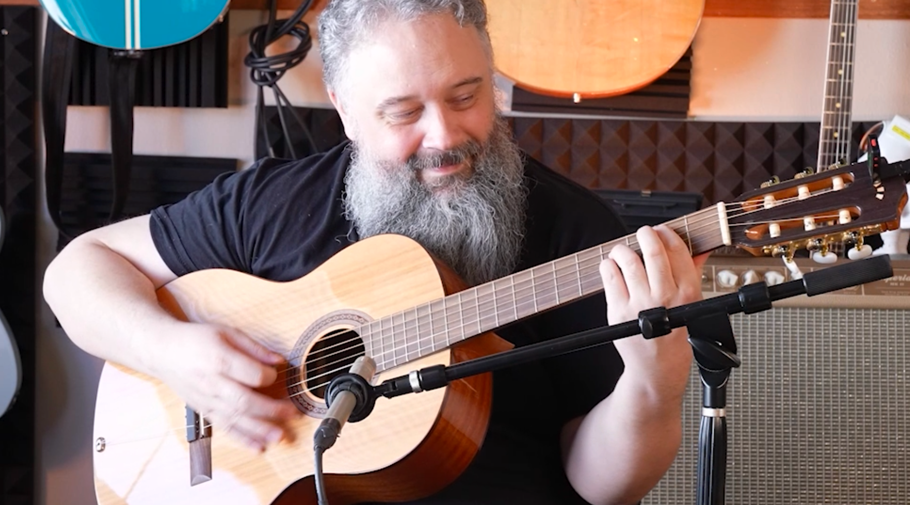 Seattle guitarist, Bear Davis, plays a Turbo Guitar for the first time, a Cordoba C5 classical guitar with steel strings and the TurboTail.